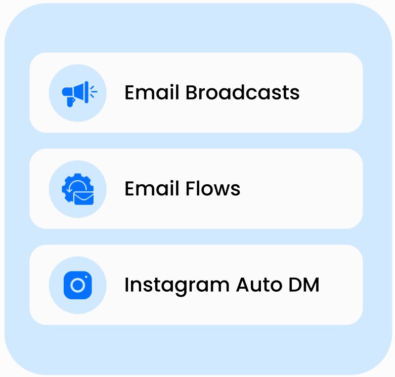 Create end to end funnels with advanced marketing tools using Insta auto DM, email broadcasts & funnels.